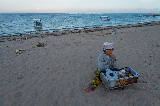Kelompok masyarakat yang satu ini telah melewati masa adaptasi dan transformasi yang mau tidak mau bisa dibilang sangat cepat. ‘Saya dulu driver bus untuk tour wisatawan khusus dari China’ kata pak Joni. Sejak awal pandemic di tahun 2020, pak Joni telah dirumahkan dan menjadi pengangguran. ‘Akhirnya saya putuskan untuk berjualan kopi dan nasi bungkus keliling, demi keluarga, mas’ kata pak Joni sambil menunjuk pada sebuah motor yang dia rubah menjadi angkutan dagangannya. Pak Joni cukup unik dan menarik, dia berjualan di sekitar jalan pantai atau dewi sri di daerah Kuta. Sosok pak Joni gampang dikenali dan di ingat karena pada saat berjualan kopi dan nasi bungkus keliling dia berpenampilan sangat rapi dan formal, lengkap dengan dasi yang tergantung di kerah kemejanya dan bersepatu. ‘Seragam saya dulu saat menjadi driver bus tour, ya rapi begini mas, kemeja dasi dan sepatu, biar masih rasa bekerja seperti dulu mas’ tegas dia menerangkan. Pak Joni ini adalah salah satu contoh dari banyak masyarakat di Bali yang justru justru memilih ‘banting stir’ dan move on menjalani profesi barunya dan mulai melupakan pariwisata.