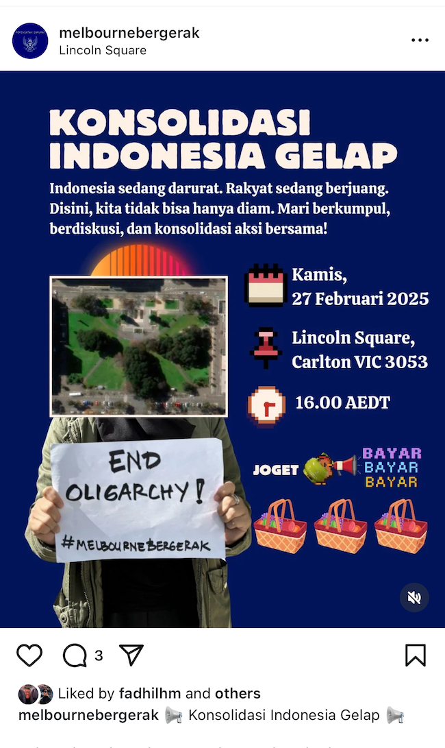 The student-led protests across Indonesia labelled Indonesia Gelap (Dark Indonesia), have sparked demonstrations in London, Toronto and parts of the US - but the headquarters of this diaspora-led movement is in Melbourne. This Melbourne-based group, Melbourne Bergerak (Melbourne Moves), is a collective of students and expatriates. Its members are highly active, holding protests, making speeches, talking to journalists and pamphleteering on rising militarism, climate change, police brutality and other disturbing social issues plaguing their homeland.