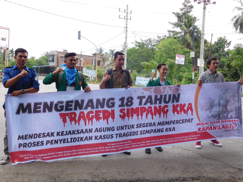 "If not now, when?" Students demand justice at the remembrance of the 18th anniversary of the Simpang KKA incident. (Lia Kent) |
