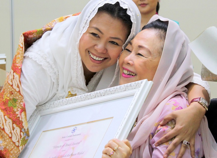 In late April Wahid spoke to 1000 women splendidly dressed in batik sarongs and tight lace kebaya blouses at the Jakarta headquarters of the Japanese Buddhist movement Soka Gakkai.