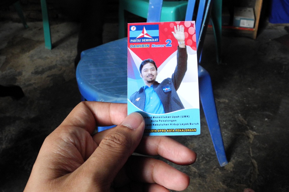 In the 2014 legislative election, the union put forward four candidates, but lost. Pictured: a union candidate's campaign card. (Hari Nugroho) |