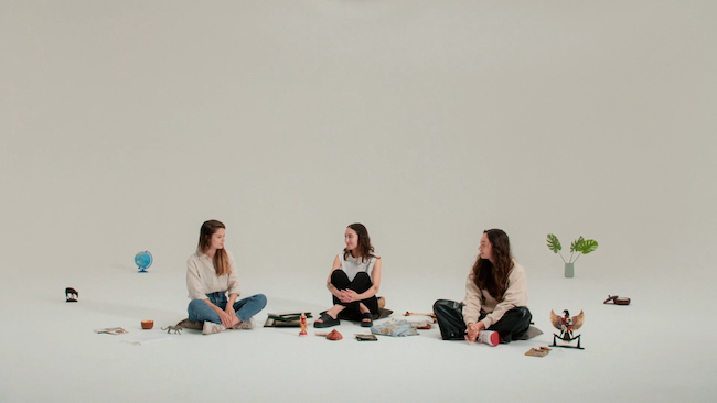 Beginning with the premise that objects and photographs contain unspeakable histories, they each brought objects of significance from their families. As they share their memories associated with the objects, they realise that each brought a unique assortment of items. Throughout their conversation, they describe various aspects of intergenerational silences, such as feelings of pain, shame, and grief that their ancestors were not able to share, but which they, as descendants living in close proximity to their relatives, have felt. Grappling with such an ambiguous inheritance, the three protagonists’ weave together various modes of tracing silences. They convey information, for example, not through verbal narration but through experimental filmmaking techniques that depict silences, symbolic representations and scenes showing the artists’ journeys towards their final artwork.